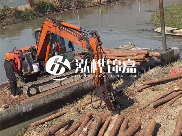 水挖(也就是水上挖掘機(jī))的液壓錘功率直接決定能打多長的樁。普通 60 型水上挖掘機(jī),液壓錘沖擊力有限,最多打到 5 米就很吃力了 —— 就像人用小錘子敲長釘子,容易把釘子敲彎。而大型 200 型以上的水挖,液壓系統(tǒng)能提供足夠的沖擊力和穩(wěn)定性,才能駕馭 8 米以上的長木樁。泓樺錦嘉能打 8 米木樁,首先靠的就是設(shè)備優(yōu)勢(shì)。他們用的是定制款水上挖掘機(jī),液壓錘經(jīng)過改裝,沖擊力比常規(guī)設(shè)備提升 30%,而且機(jī)身配重更合理,在水面作業(yè)時(shí)減少晃動(dòng),避免長木樁因受力不均斷裂。